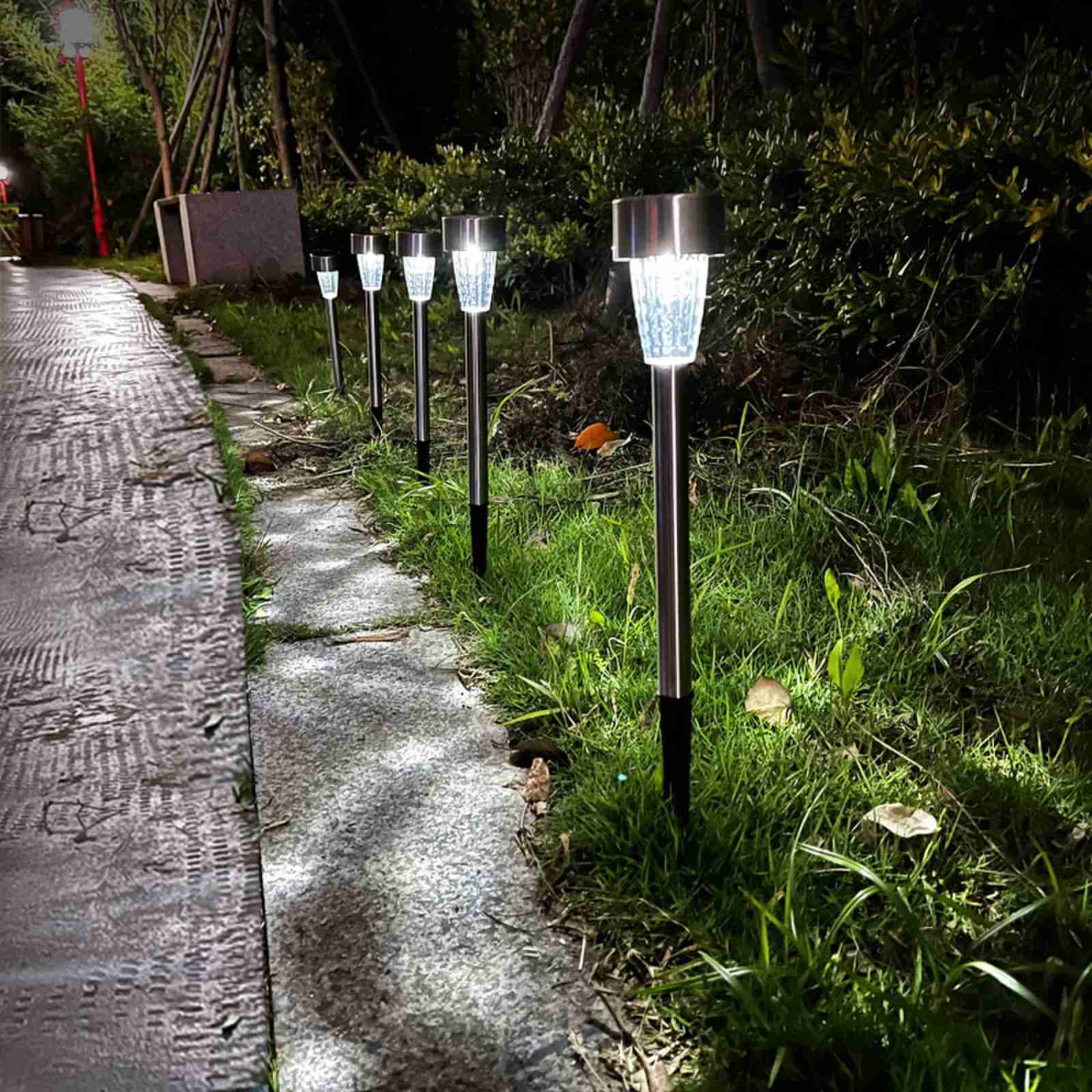 3.【Премиум декорација】Соларните пејзажни светла создаваат прекрасен образец кој додава допир на елеганција на вашиот пат, тревникот, градината, дворот. Нашата услуга по продажбата исто така гарантира дека можете да се потпрете на нас за сите ваши потреби за надворешно осветлување.