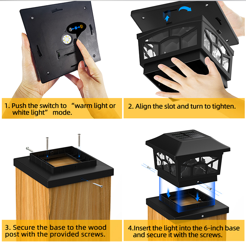 Детали за нашата Соларна градинарска светлина со двоен режим на соларна пост капа: